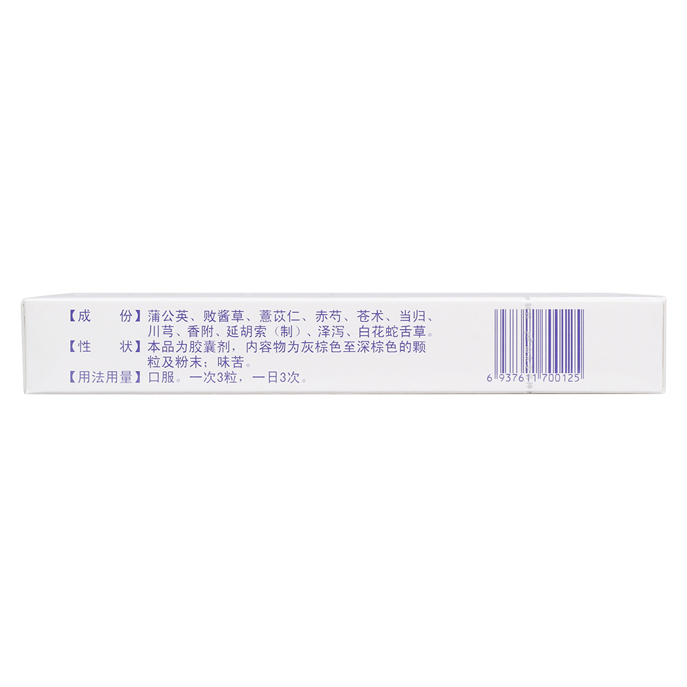 【主要成份】蒲公英、敗醬草、赤芍、薏苡仁、蒼術(shù)、當(dāng)歸、川芎、香附、澤瀉、白花蛇舌草、延胡索。