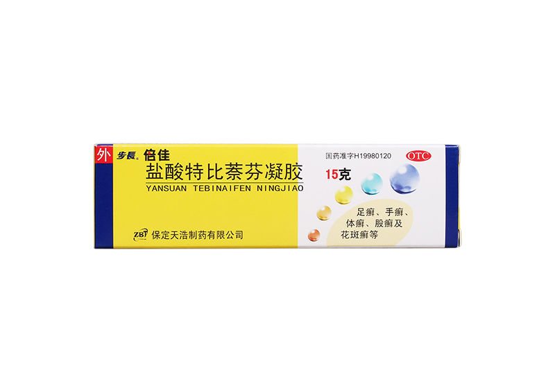 【主要成份】本品每支含鹽酸特比萘芬0.15克,輔料為卡波姆、丙二醇、乙醇、聚乙二醇400、聚山梨酯80、乙二胺四醋酸 二鈉、三乙醇胺。